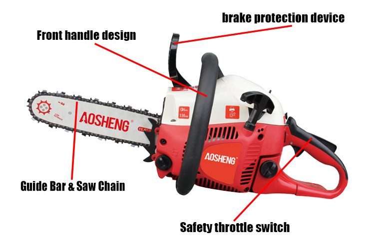 | 02Fren koruma cihazıFren tepkisi hassastır, çalışma güvenliğini geliştirir. Ön gideri ve arka gideri, basit ve sağlam bir yapıya sahip bir olarak yapılır. Baskı Cihaz zincir testereyi durdurabilir. |